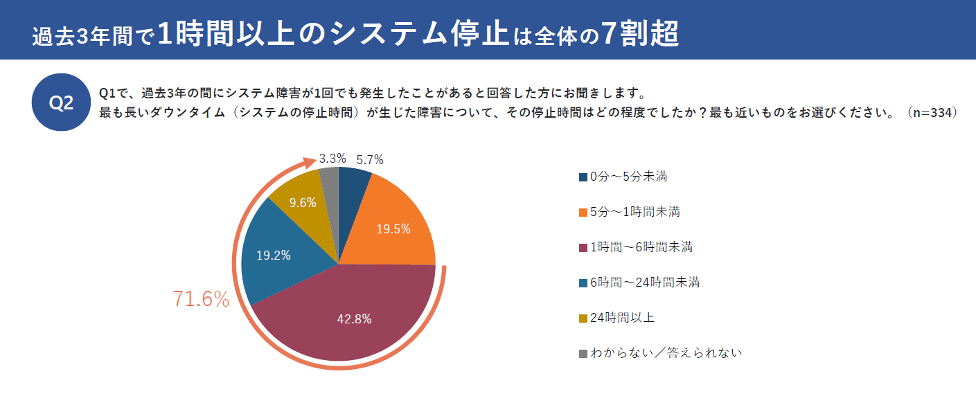 - 過去3年間で1時間以上のシステム停止は全体の7割超